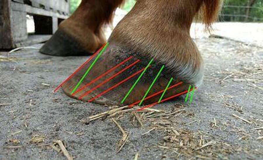Tällä hevosella on pitkä ja kapea kavio, kannat on matalat ja eteenpäin siirtyneet.